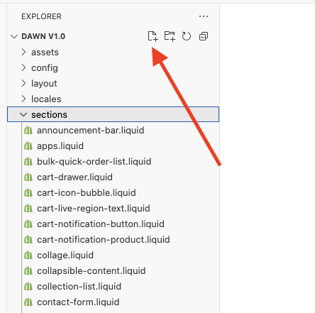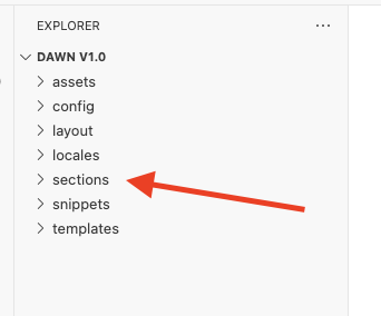 En el editor de código que se abre, del lado izquierdo se tiene que hacer click en sections.